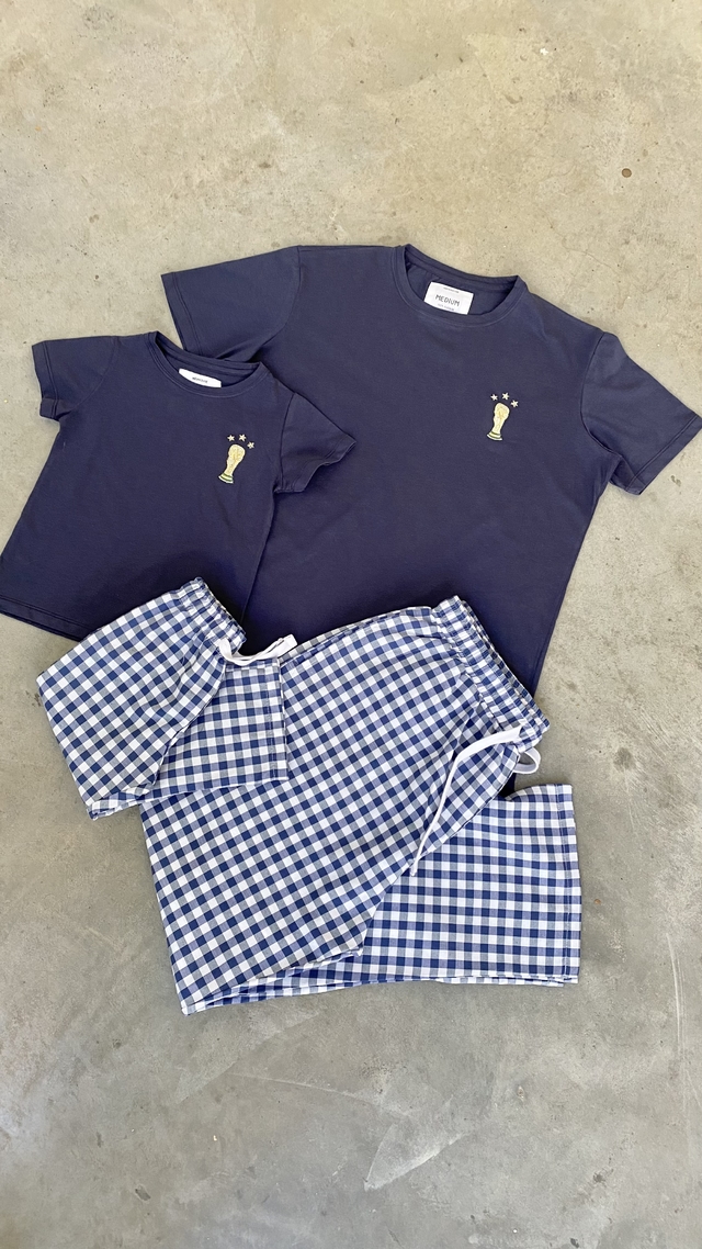 Pijama 100% algodón. Remera bordada de algodón pima peruano.
