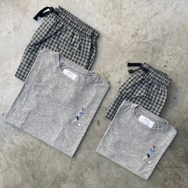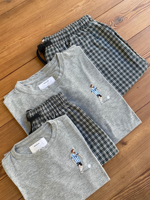 Pijama 100% algodón. Remera bordada de algodón pima peruano.