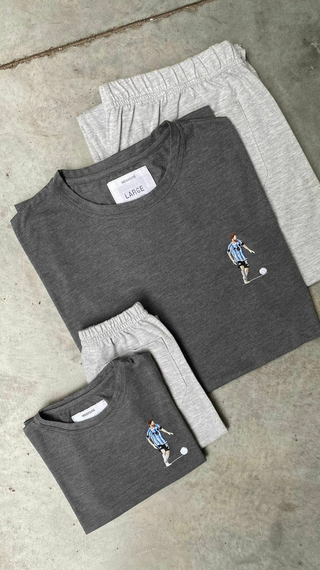Remera manga corta de algodón pima peruano. Pantalón largo de jersey de algodón.